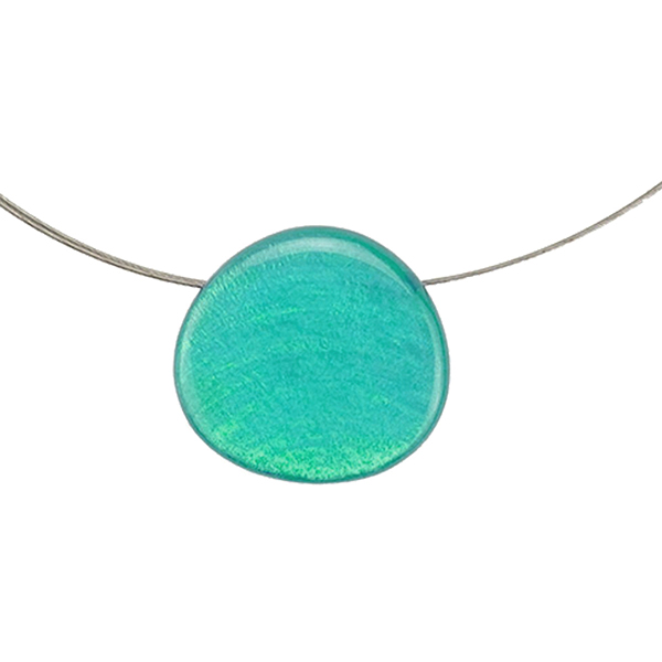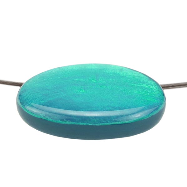 Material: Anhänger aus Capizmuschel (Placuna placenta) mit Kunstharz überzogen; Kette und Verschluss aus Edelstahl, nickelfrei