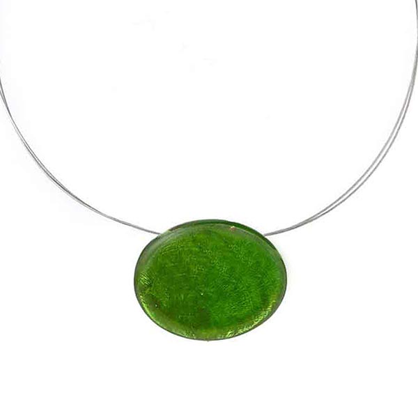 Material: Anhänger aus Capizmuschel (Placuna placenta) mit Kunstharz überzogen; Kette und Verschluss aus Edelstahl, nickelfrei