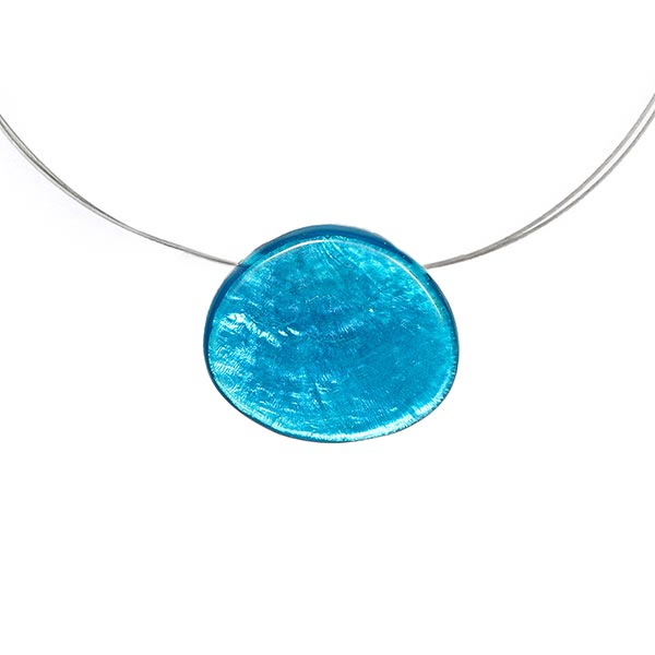 Material: Anhänger aus Capizmuschel (Placuna placenta) mit Kunstharz überzogen; Kette und Verschluss aus Edelstahl, nickelfrei