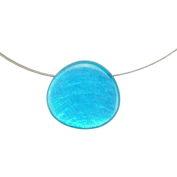 Material: Anhänger aus Capizmuschel (Placuna placenta) mit Kunstharz überzogen; Kette und Verschluss aus Edelstahl, nickelfrei
