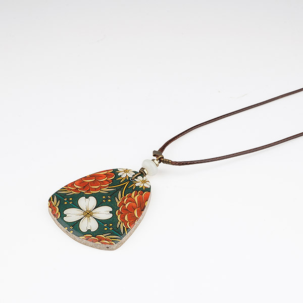 Material: Fliese aus Ton-Stein-Mischung, Messing (nickelfrei), weiße Kunststoffperle, Textilband gewachst, verstellbar über Schiebeknoten