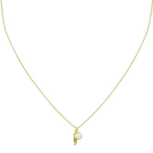 Toller Lieblingsschmuck aus Jaipur, Indien mit filigranem Regenbogen Mondstein-Anhänger und Feder. Die Schmuckstücke aus vergoldetem Messing wurden in der Werkstatt Creative Designs handgefertigt.