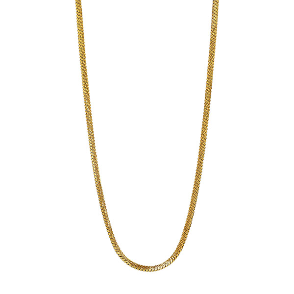 Diese stilvolle Snake-Chain-Kette besticht durch ihre fließende Form und den edlen Glanz der hochwertigen Vergoldung. Die feine, glatte Struktur schmiegt sich elegant an den Hals und verleiht jedem Outfit eine moderne, zeitlose Note. Ob einzeln getragen oder im Layering-Look kombiniert – diese Kette ist ein vielseitiger Begleiter für jeden Anlass.