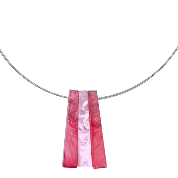 Feurige Halskette mit stabförmigen Anhängern aus der Capizmuschel - ein Hingucker am Hals.