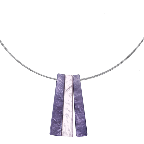 Schöne zweifarbige Halskette mit stabförmigen Anhängern aus der Capizmuschel - ein Hingucker am Hals.