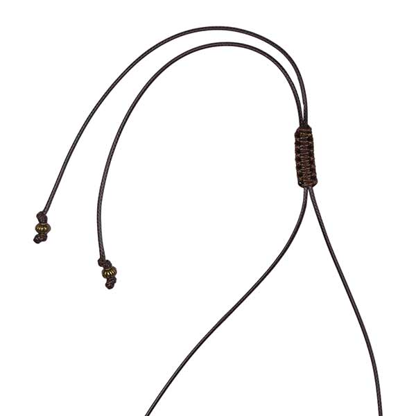 Material: Fliese aus Ton-Stein-Mischung, Messing, rote Kunststoffperle, Textilband gewachst, verstellbar über Schiebeknoten