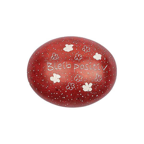 Jedes Stück ist ein Unikat und kann in Form, Größe oder Farbgebung leicht von der Abbildung abweichen. Die Bemalung des Steins ist transparent, die Struktur und Zeichnung des Natursteins ist unter der Bemalung noch sichtbar (Äderchen, Schattierungen, dunkle Stellen). Diese Eigenschaften gehören zum Naturstein und sind kein Mangel.
