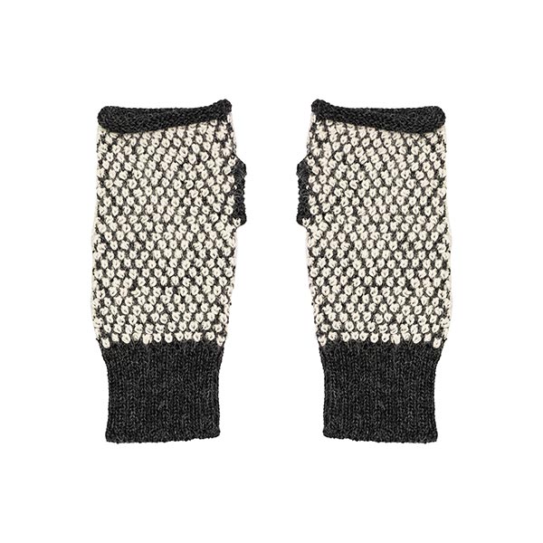 Handstulpen in modernem Design mit Daumenloch, mit Röllchenabschlüssen.