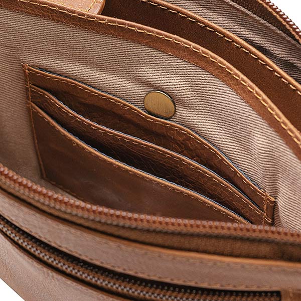 Material: offenporiges Rindsleder in ausgesuchter Qualität aus teilvegetabiler Gerbung, es changiert von hell nach dunkel, so bleibt der natürliche Look des Leders erhalten. Das hochwertige Vintageleder überzeugt durch seine natürliche Struktur und den weichen Griff.