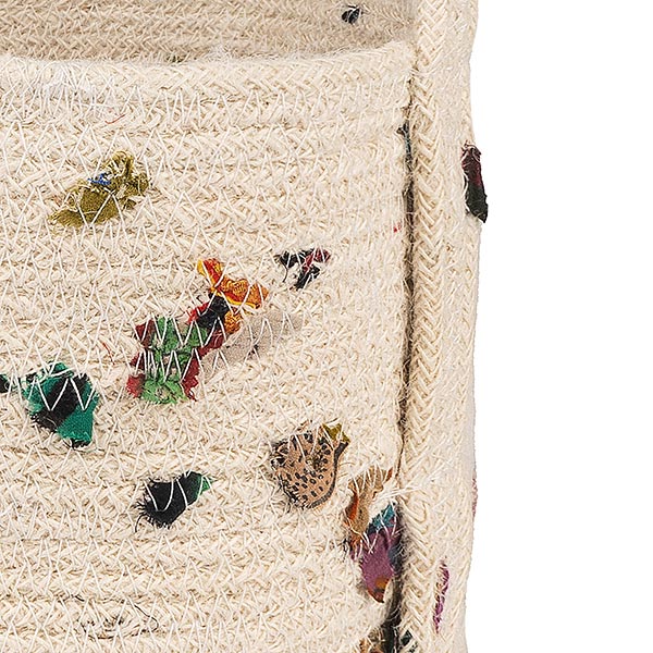 Dieser praktische Henkelkorb aus Jute und recyceltem Sari-Stoffen bietet die perfekte Kombination aus Nachhaltigkeit und Design. Die Körbe von Dhaka werden in Bangladesh handgefertigt und mit jahrelanger Erfahrung von überwiegend weiblichen Handwerkenden in liebevoller Handarbeit geflochten. Somit bietet das Korbflechten ein sehr wichtiges, verlässliches Einkommen, welches es den Frauen ermöglicht, ihre Familien zu unterstützen und unabhängig zu sein.