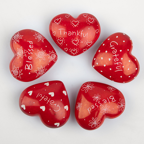 Die fein gearbeiteten Herzen bestehen aus afrikanischem Speckstein und eignen sich wunderbar als kleine Aufmerksamkeit für verschiedene Anlässe, um Partnern, der Familie oder Freunde eine kleine Freude zu machen. Auch ideal als Handschmeichler in stressigen Situationen, mit verschiedenen Segenswünschen graviert..