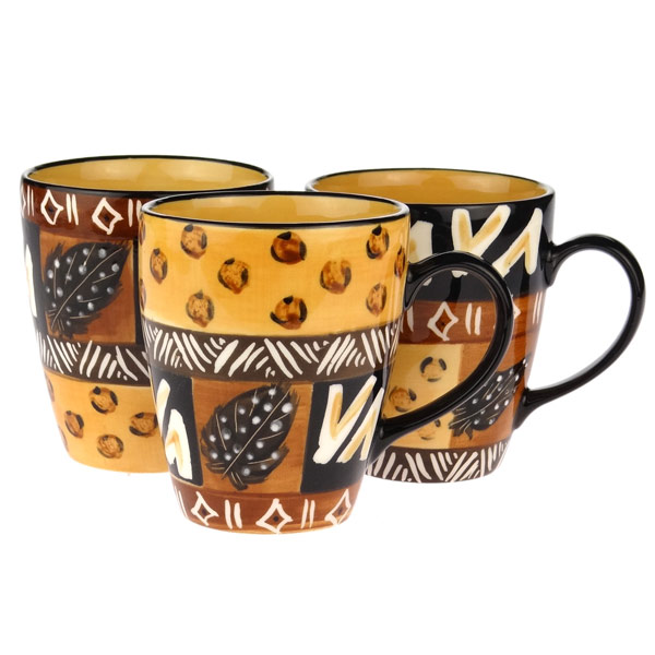Kunstvolle, handbemalte Tischkeramik aus den Werkstätten von KAPULA an der Südspitze Afrikas. Sie zeigt die farbenfrohe Vielfalt des Kontinents. Jedes Stück ist einzigartig. Der Keramikbecher hat ein Fassungsvermögen von 380ml. Maß: Höhe: ca.11cm, Durchmesser: ca. 9cm Design: Unterglasur, handbemalt mit Mustern aus der afrikanischen Tierwelt. Es gibt viele Varianten innerhalb einer Farbfamilie, gelieferter Artikel kann von der Abbildung abweichen.Material: hochwertiges Steinzeug aus weißem Ton, Glasurbrand bei 1.200°C Eigenschaften: mikrowellengeeignet, für Lebensmittel geeignet.Empfehlung: handgemachte Keramik ist stoßempfindlicher als Industriekeramik. Die Standfläche der Keramik ist nicht glasiert. Wir empfehlen die schonende Reinigung durch Handabwasch.