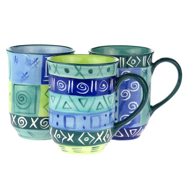 Kunstvolle, handbemalte Tischkeramik aus den Werkstätten von KAPULA an der Südspitze Afrikas. Sie zeigt die farbenfrohe Vielfalt des Kontinents. Jedes Stück ist einzigartig. Der Keramikbecher hat ein Fassungsvermögen von 350ml. Maß: Höhe: ca.11cm, Durchmesser: ca. 8,5cm Design: Unterglasur, handbemalt in Blau- und Grüntönen. Es gibt viele Varianten innerhalb einer Farbfamilie, gelieferter Artikel kann von der Abbildung abweichen.Material: hochwertiges Steinzeug aus weißem Ton, Glasurbrand bei 1.200°C Eigenschaften: mikrowellengeeignet, für Lebensmittel geeignet.Empfehlung: handgemachte Keramik ist stoßempfindlicher als Industriekeramik. Die Standfläche der Keramik ist nicht glasiert. Wir empfehlen die schonende Reinigung durch Handabwasch.