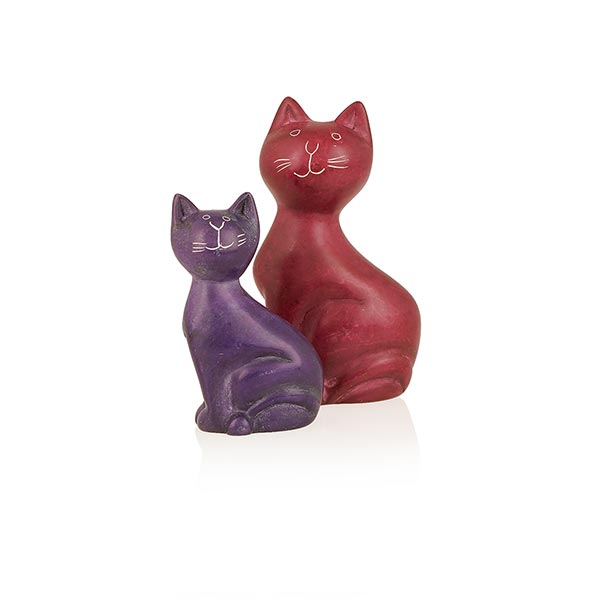 Bezaubernde kleine Katzen Figur mit niedlich, gespitzten Ohren und einem schelmischen Grinsen - ein perfektes Geschenk für alle Liebhaber und Liebhaberinnen der felligen Freunde. Das gesamte Speckstein Sortiment wird in sorgfältiger Handarbeit in der Region Kisii in Kenia geschnitzt, bemalt, graviert und poliert. Seit 1995 überzeugt unser Partner Afrikiko mit innovativen Designs.