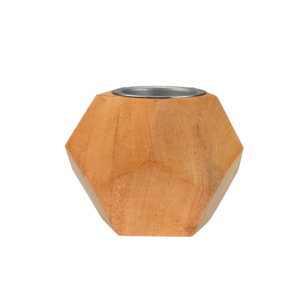 SONDERPREIS: JETZT 8,50€ STATT 9,50€.Kunstvoller Kerzenhalter in Facettenschliff. Ausgestattet mit einem Metalleinsatz für Teelicht oder Stumpenkerze (D:40mm). Durchmesser 8cm, Höhe 7cm, Mahagoniholz aus kontrollierter Plantagenwirtschaft. Sicherheitshinweis: Lassen Sie brennende Kerzen nicht unbeobachtet. Halten Sie ausreichend Abstand zu brennbaren Gegenständen. Außer Reichweite von Kindern und Tieren benutzen. Löschen Sie die Kerzenflamme, wenn diese dem Rand des Kerzenhalters zu nahe kommt.