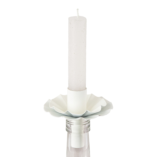 Ein raffinierter Kerzenhalter zum Aufstecken auf Weinflaschen im romantischen Blüten-Design. So wird aus einer leeren Flasche ein prächtiger Raumschmuck und eine interessante Dekoidee.