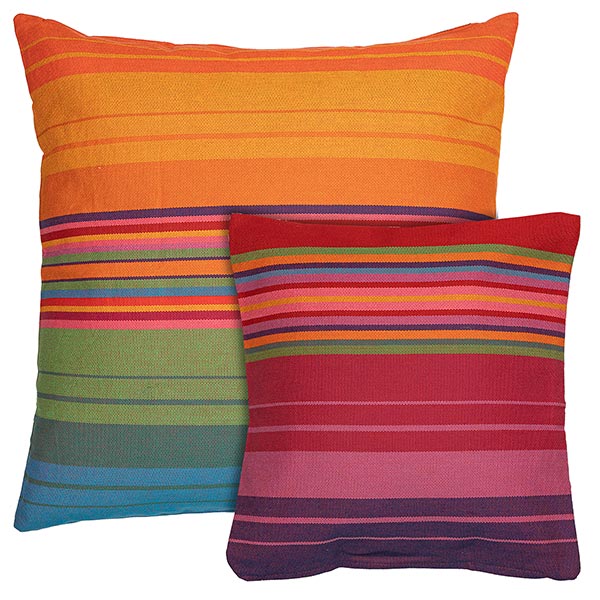 Beim Zuschnitt von Kissenhüllen und Freizeittaschen entstehen produktionsbedingt Varianten des abgebildeten Streifendesigns.