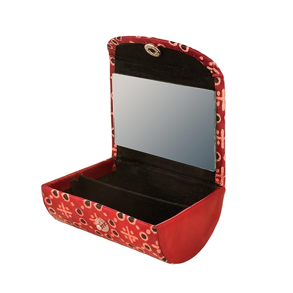 Modisches Accessoire aus handbemaltem Ziegenleder mit parktischem Spiegel.