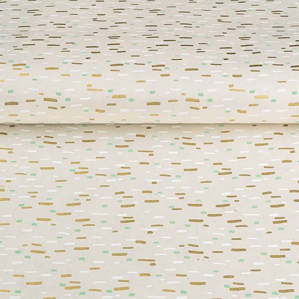 Dieses außergewöhnliche Papier wird aus der Loktafaser in Nepal handgeschöpft und im Siebdruck-Verfahren bedruckt. Lokta, die Rindenfaser des Seidelbastes, wird im Himalaya von Dorfgemeinschaften geerntet und in kleinen Papiermanufakturen nach alter Tradition zu Papier verarbeitet. Loktapapier hat eine besonders weiche, stoffähnliche Haptik und kann mit verschiedensten Techniken gefärbt und gestaltet werden.