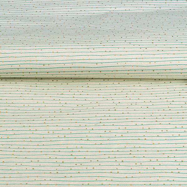 Dieses außergewöhnliche Papier wird aus der Loktafaser in Nepal handgeschöpft und im Siebdruck-Verfahren bedruckt. Lokta, die Rindenfaser des Seidelbastes, wird im Himalaya von Dorfgemeinschaften geerntet und in kleinen Papiermanufakturen nach alter Tradition zu Papier verarbeitet. Loktapapier hat eine besonders weiche, stoffähnliche Haptik und kann mit verschiedensten Techniken gefärbt und gestaltet werden.