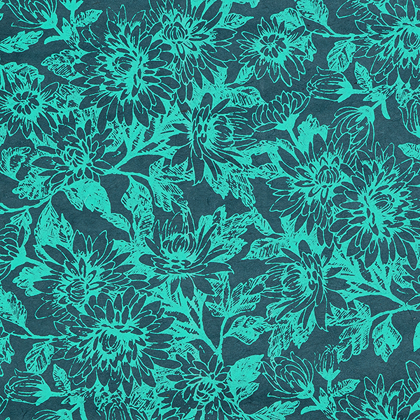 Dieses außergewöhnliche Papier wird aus der Loktafaser in Nepal handgeschöpft und im Siebdruck-Verfahren bedruckt. Lokta, die Rindenfaser des Seidelbastes, wird im Himalaya von Dorfgemeinschaften geerntet und in kleinen Papiermanufakturen nach alter Tradition zu Papier verarbeitet. Loktapapier hat eine besonders weiche, stoffähnliche Haptik und kann mit verschiedensten Techniken gefärbt und gestaltet werden.
