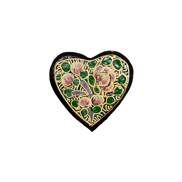 Dekorativer Magnet aus Pappmaché, aufwändig handbemalt in bunten Farben und detailverliebten Blumenmustern von dem kleinen Familienbetrieb Jalaluddin in der Region Kaschmir in Nordindien.