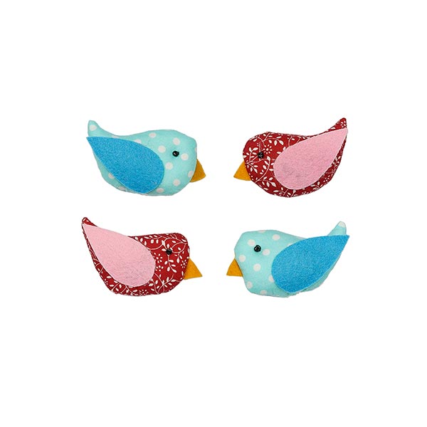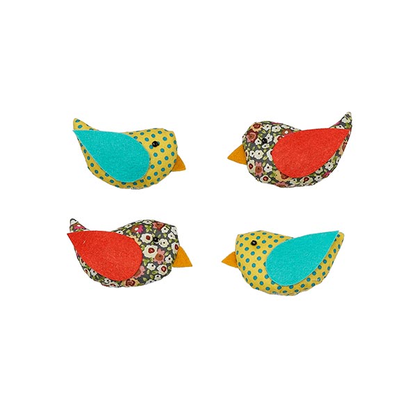 Liebevoll gefertigte Vogel Magnete aus Baumwollstoff mit einer leichten Füllung aus Polyesterwatte. Sie bewahren Erinnerungen & Notizen davor davon zu flattern. Ein niedlicher kleiner Hingucker für jeden Kühlschrank und jede Pinnwand. Handarbeit aus Thailand.