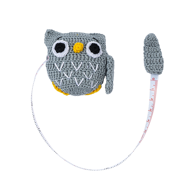 Fantasievoller kleiner Helfer im Haushalt und bei Handarbeiten, diese bunte Eule hat ein Rollband im Inneren, das sich durch Zug am Fuß ausziehen lässt.