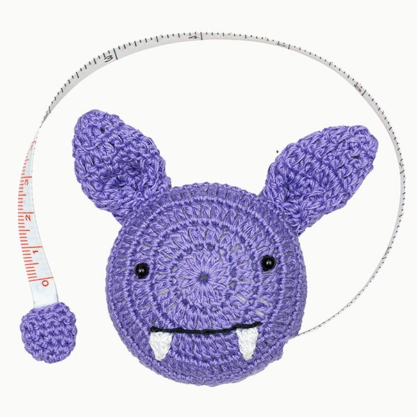 Fantasievoller kleiner Helfer im Haushalt und bei Handarbeiten, diese freche Fledermaus hat ein Rollband im Bauch, das sich durch Zug am Schwanzende ausziehen lässt. Zum Einrollen mit Daumen und Zeigefinger den Bauch zusammendrücken.