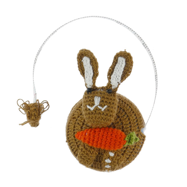 Fantasievoller kleiner Helfer im Haushalt und bei Handarbeiten, dieser süße Hase hat ein Rollband im Inneren, das sich durch Zug an dem Häkelende ausziehen lässt. Zum Einrollen mit Daumen und Zeigefinger den Körper zusammendrücken.