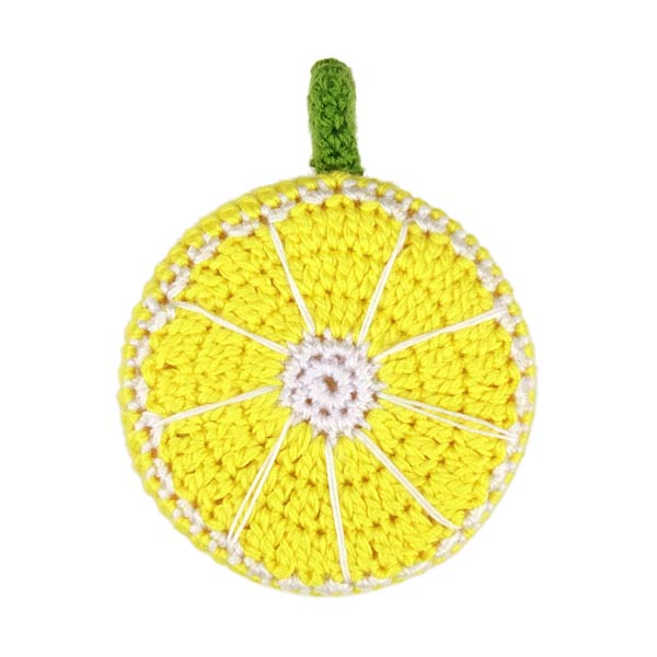 Fantasievoller kleiner Helfer im Haushalt und bei Handarbeiten, diese Südfrucht hat ein Rollband im Inneren, das sich durch Zug am Maßbandende ausziehen lässt. Zum Einrollen mit Daumen und Zeigefinger den Körper zusammendrücken.