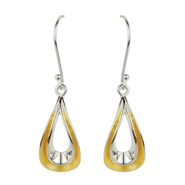 Eleganter Ohrhänger aus 925er Silber, teilweise vergoldet. Maße ca. 2,2 x 1,1cm, Gesamtlänge inkl. Ohrhaken ca. 3,9cm. Passend zu Anhänger 202873.