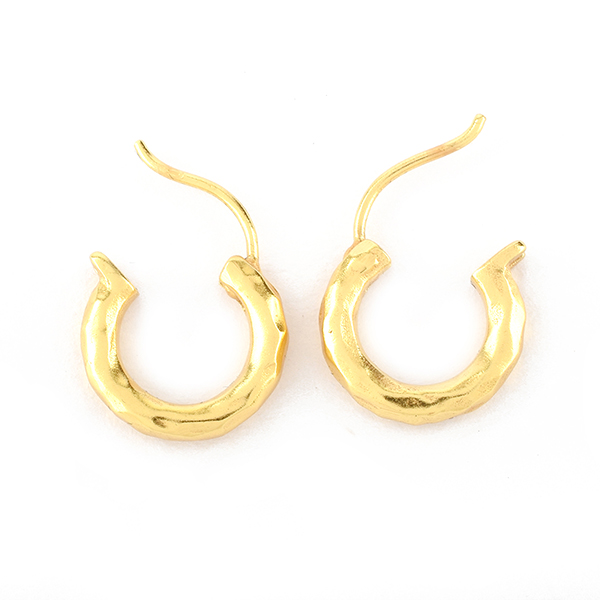 Wunderschöne kleine gehämmerte Creole. Die Schmuckstücke aus vergoldetem Messing werden in der Werkstatt Creative Designs in Jaipur, Indien handgefertigt.