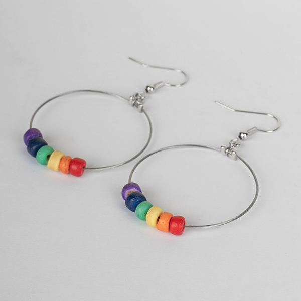 Leichte Creole mit bunten Perlchen aus der Kokosnuss-Schale - ein PRIDE Statement Schmuckstück.
