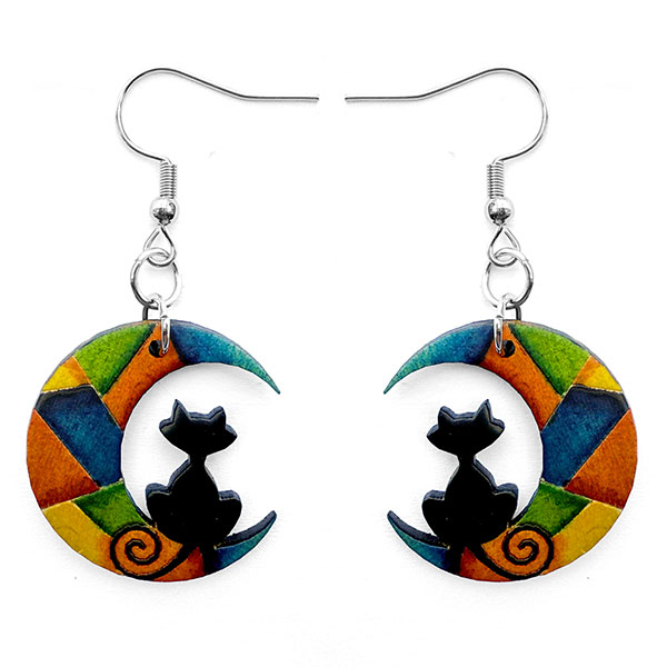 Fröhlicher Ohrhänger, passend für alle Katzen Liebhaber und Lieberhaberinnen, hergestellt aus Flaschenkürbis und mit Liebe handbemalt.