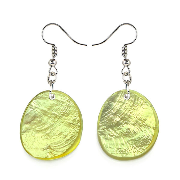 Material: Capizmuschel (Placuna placenta) mit Kunstharz überzogen; Ohrhänger aus Edelstahl, nickelfrei