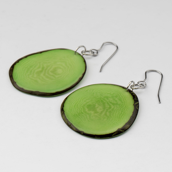 Diese flachen Ohrhänger in sanftem Mintgrün lassen sich perfekt mit unseren anderen farbenfrohen Ketten und Armbändern aus der leichten TAGUA Nuss (= natürliches Elfenbein aus Bogotá, Kolumbien) kombinieren.