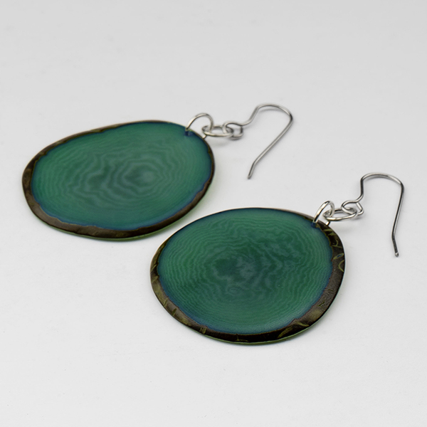 Diese flachen Ohrhänger in petrol / türkis lassen sich perfekt mit unseren anderen farbenfrohen Ketten und Armbändern aus der leichten TAGUA Nuss (= natürliches Elfenbein aus Bogotá, Kolumbien) kombinieren.