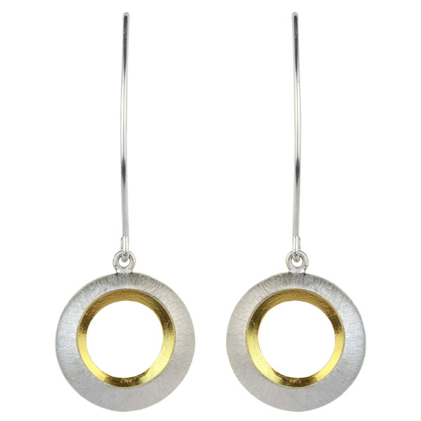 Elegante, edle Ohrhänger von unserem Produzent VEVA aus Thailand. In einer besonderen Gusstechnik gefertigt, werden die Schmuckstücke mit Goldpartien veredelt. Besonders ansprechend ist die gebürstete Oberfläche des Silbers.