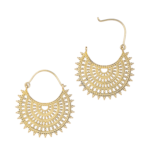 Filigran gearbeitete Ohrringe aus nickelfreiem Messing im antiken Look, die ihre Wurzeln in den traditionellen indischen Ornamenten und Mandalas haben. Alle Schmuckstücke von Umed Singh werden in Handarbeit gefertigt.
