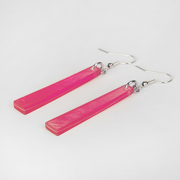 Material: Capizmuschel (Placuna placenta), mit Kunstharz überzogen; Ohrhaken aus Edelstahl, nickelfrei