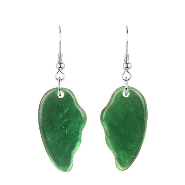 Material: Capizmuschel (Placuna placenta) mit Kunstharz überzogen; Ohrhaken aus Edelstahl, nickelfrei