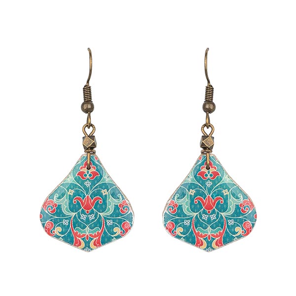 Was für eine Augenweide - unsere neuen Ohrhänger in Zwiebelform. Das Design wirkt wie gemalt: rote Blüten auf kräftigem, seegrünen Grund.