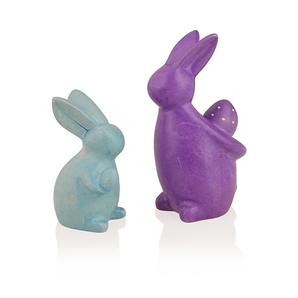 Der Osterhase bringt ein Ei vorbei: Mit dem witzigen Speckstein Häschen kommt Freude auf den Ostertisch - in drei pastelligen Tönen erhältlich.