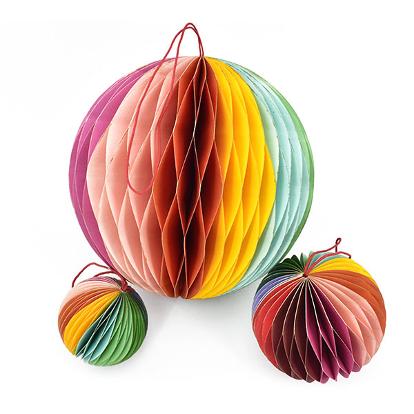 Eine wunderschöne Dekoration aus Papier in bunten Farben. Diese Regenbogen Kugel ist ein einzigartiger Eyecatcher und eignet sich für jede Art der Dekoration.