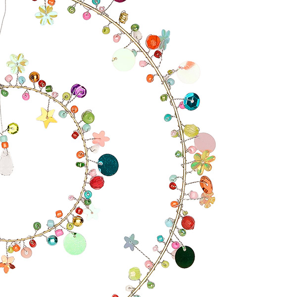 Fantasievolle Drahtdekoration mit Perlen, hergestellt von unserem Partner Almeerath aus Ägypten. Die aus Draht geformten Dekorationen werden aufwändig von Hand mit Perlen und kleinen Anhängern aus Glas und Kunststoff verziert. Eine fröhlich bunte Deko zum Aufhängen an Wand, Fenster oder Haustür.