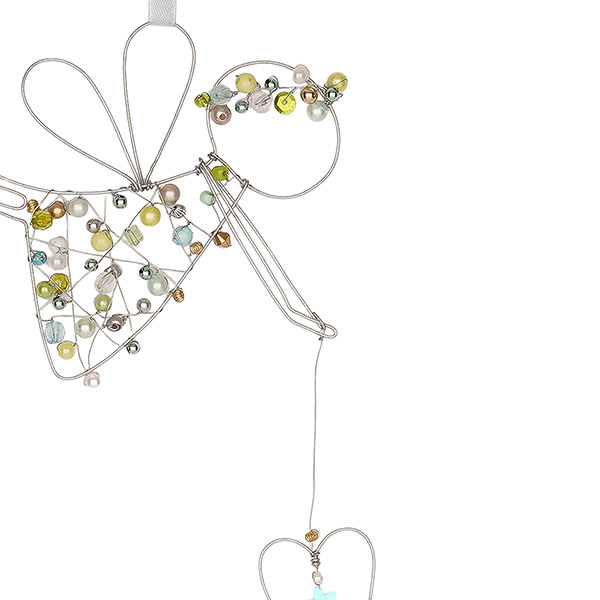 Fantasievolle Drahtdekoration mit Perlen, hergestellt von unserem Partner Almeerath aus Ägypten. Die aus Draht geformten Dekorationen werden aufwändig von Hand mit Perlen und kleinen Anhängern aus Glas und Kunststoff verziert. Eine fröhlich bunte Deko zum Aufhängen an Wand, Fenster oder Haustür.