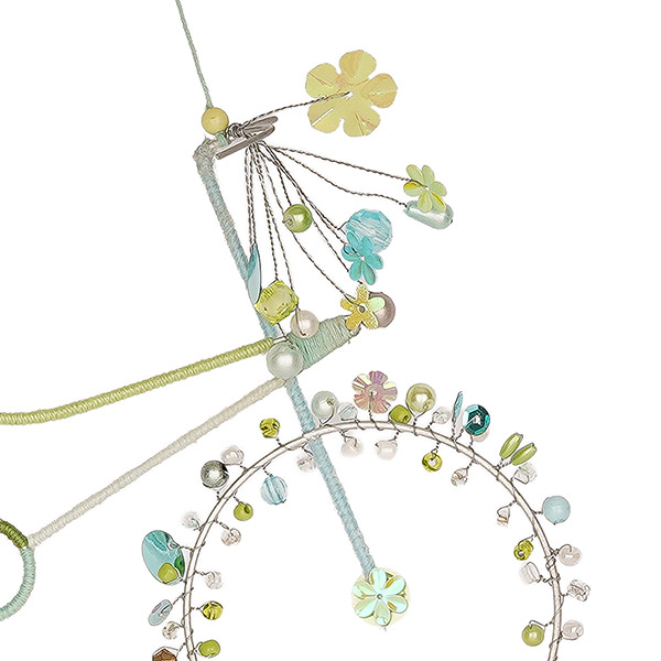 Fantasievolle Drahtdekoration mit Perlen, hergestellt von unserem Partner Almeerath aus Ägypten. Die aus Draht geformten Dekorationen werden aufwändig von Hand mit Perlen und kleinen Anhängern aus Glas und Kunststoff verziert. Eine fröhlich bunte Deko zum Aufhängen an Wand, Fenster oder Haustür.