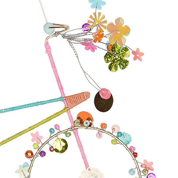 Fantasievolle Drahtdekoration mit Perlen, hergestellt von unserem Partner Almeerath aus Ägypten. Die aus Draht geformten Dekorationen werden aufwändig von Hand mit Perlen und kleinen Anhängern aus Glas und Kunststoff verziert. Eine fröhlich bunte Deko zum Aufhängen an Wand, Fenster oder Haustür.