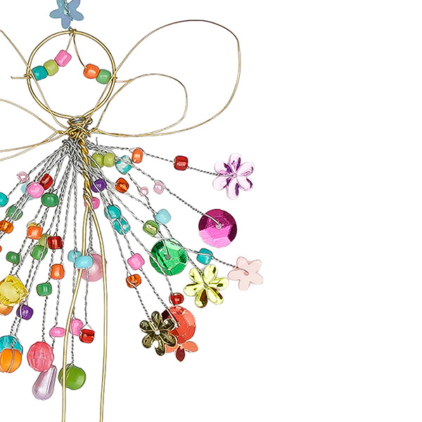Fantasievolle Drahtdekoration mit Perlen, hergestellt von unserem Partner Almeerath aus Ägypten. Die aus Draht geformten Dekorationen werden aufwändig von Hand mit Perlen und kleinen Anhängern aus Glas und Kunststoff verziert. Eine fröhlich bunte Deko zum Aufhängen an Wand, Fenster oder Haustür.